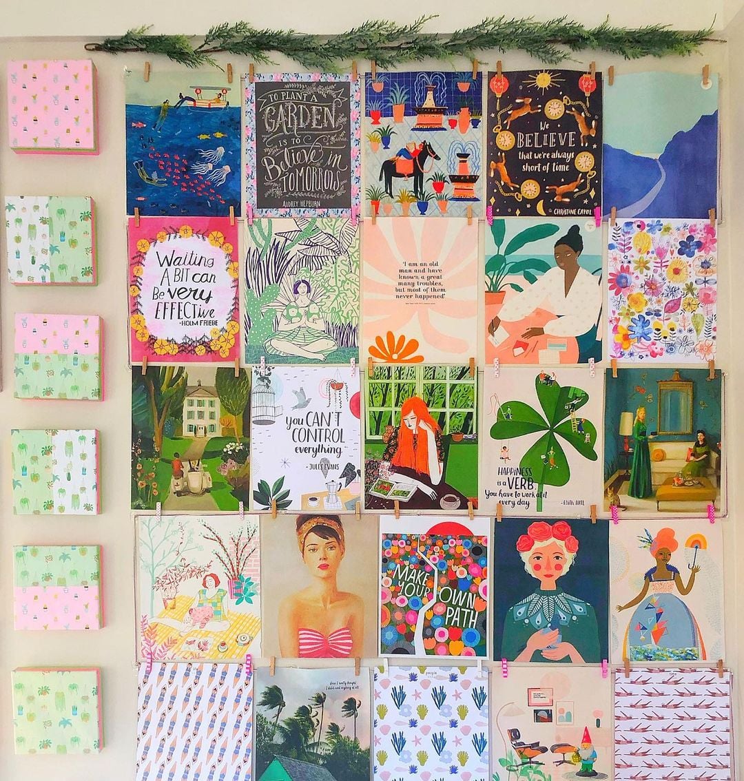 Anna’s study walls are decorated with patterned cards and a memo board for important notes.