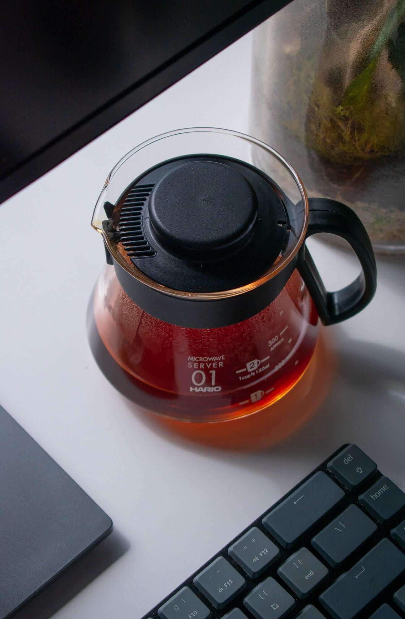 Alongside my bowl of quinoa, I’ll have a cup of black filter coffee that I make with freshly ground beans from my 1Zpresso hand grinder and Hario V60.
