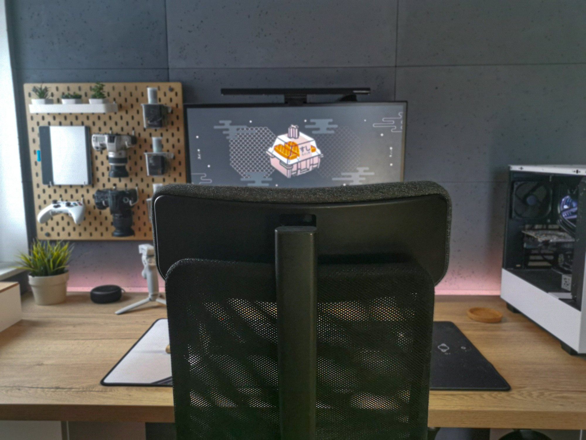 From the desk pad and keycaps to the LEGO shoe, everything in my workspace complements the vibe set by the concrete panels. Oh, did you know there are trainers made from LEGO? I think this is awesome.